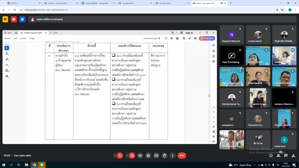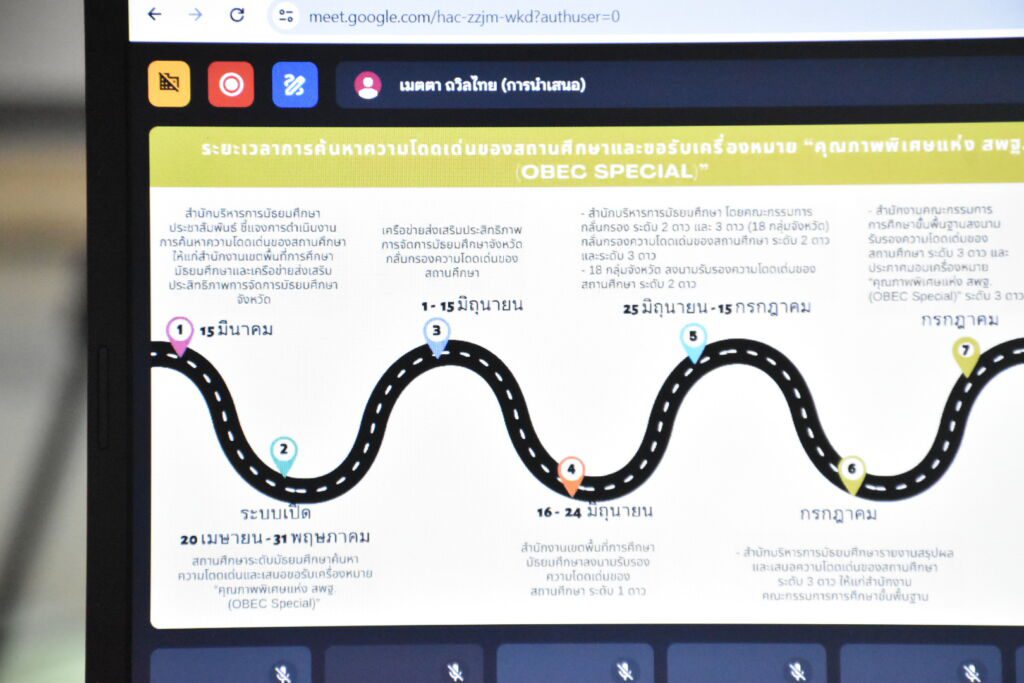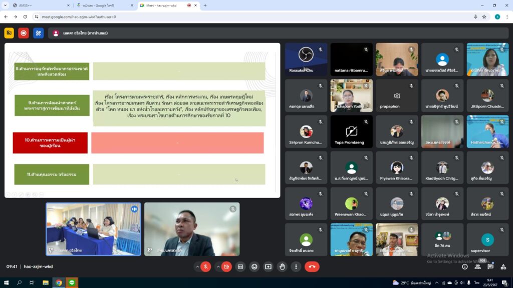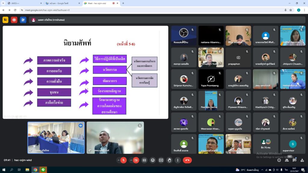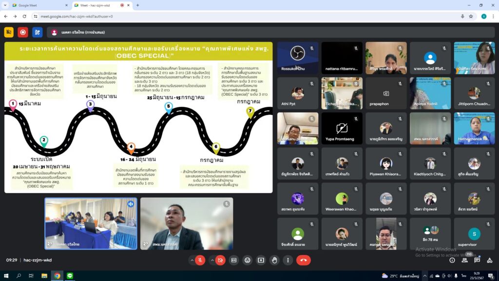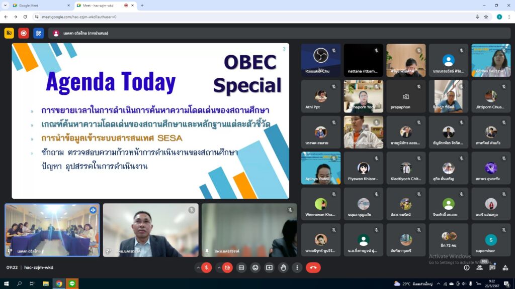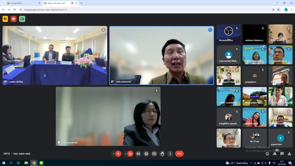วันพฤหัสบดีที่ 23 พฤษภาคม พ.ศ. 2567 เวลา 9.00 น. นายสมบัติ ล้อจงเฮง รองผู้อำนวยการสำนักงานเขตพื้นที่การศึกษามัธยมศึกษานครสวรรค์ และ นายชาญชัย ชนิดสะ ผู้อำนวยการโรงเรียนนครสวรรค์ เป็นประธานการประชุมสื่อสารสร้างความเข้าใจการรายงานการค้นหาความโดดเด่นของสถานศึกษาเพื่อรับเครื่องหมายคุณภาพพิเศษแห่ง สพฐ (OBEC Special) ในระบบ SESA พร้อมคณะบุคลากรกลุ่มนิเทศ ติดตาม และประเมินผลการจัดการศึกษา เพื่อสร้างความเข้าใจเกี่ยวกับการใช้ระบบเพื่อให้โรงเรียนสามารถนำเข้าข้อมูลได้ถูกต้องตามเกณฑ์และตัวชี้วัด รวมทั้งขั้นตอนในการนำข้อมูลเข้าระบบที่ถูกต้อง แก่ครูผู้ดูแลระบบ SESA ในระดับสถานศึกษา ผ่านระบบ VDO Conference ด้วยโปรแกรม Google Meet ณ ห้องประชุมลูกนเรศวร สำนักงานเขตพื้นที่การศึกษามัธยมศึกษานครสวรรค์