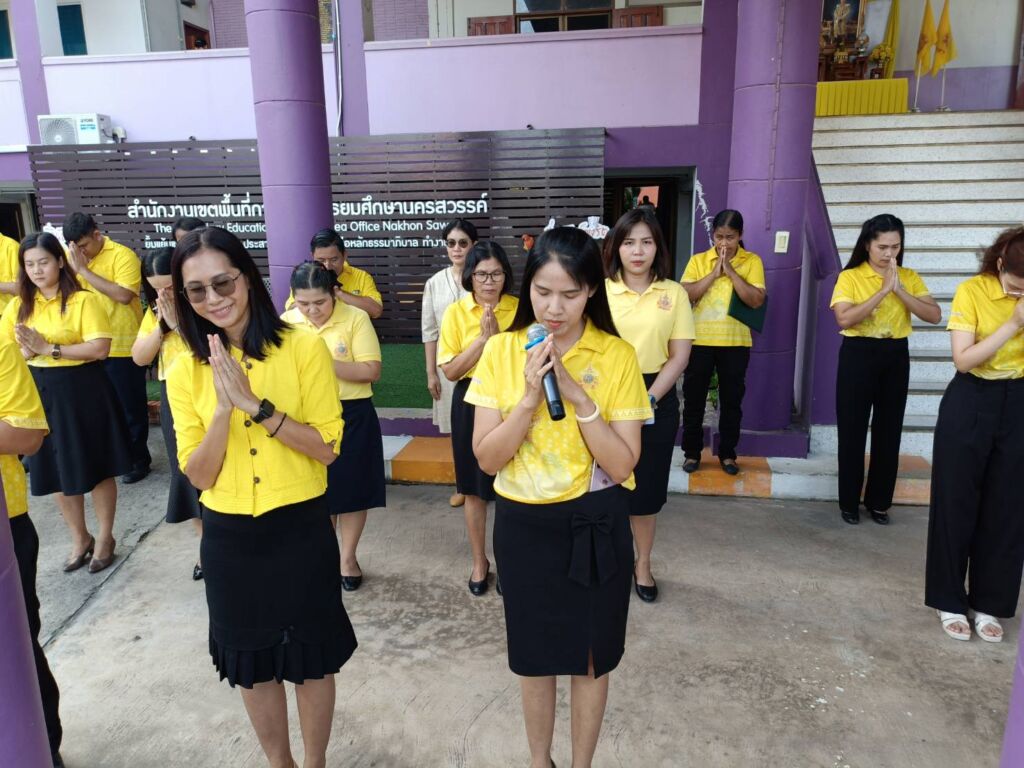 วันจันทร์ที่ 27 พฤษภาคม พ.ศ. 2567 เวลา 8.20 นาฬิกา นายประทาน หาดยาว ผู้อำนวยการสำนักงานเขตพื้นที่การศึกษามัธยมศึกษานครสวรรค์ พร้อมด้วย นายรังสิวุฒิ พุ่มเกิด รองผู้อำนวยการสำนักงานเขตพื้นที่การศึกษามัธยมศึกษานครสวรรค์ นายสมบัติ ล้อจงเฮง รองผู้อำนวยการสำนักงานเขตพื้นที่การศึกษามัธยมศึกษานครสวรรค์ และคณะบุคลากรสำนักงานเขตพื้นที่การศึกษามัธยมศึกษานครสวรรค์ เข้าร่วมกิจกรรมเคารพธงชาติตามพันธกิจ กล่าวนำสวดมนต์ พร้อมทั้งประกาศเจตจำนงในการบริหารงานด้วยความซื่อสัตย์ สุจริตอย่างโปร่งใส สามารถตรวจสอบได้ พร้อมรับผิดชอบและต่อต้านการทุจริตทุกรูปแบบ เพื่อสร้างความเชื่อมั่นแก่สังคม