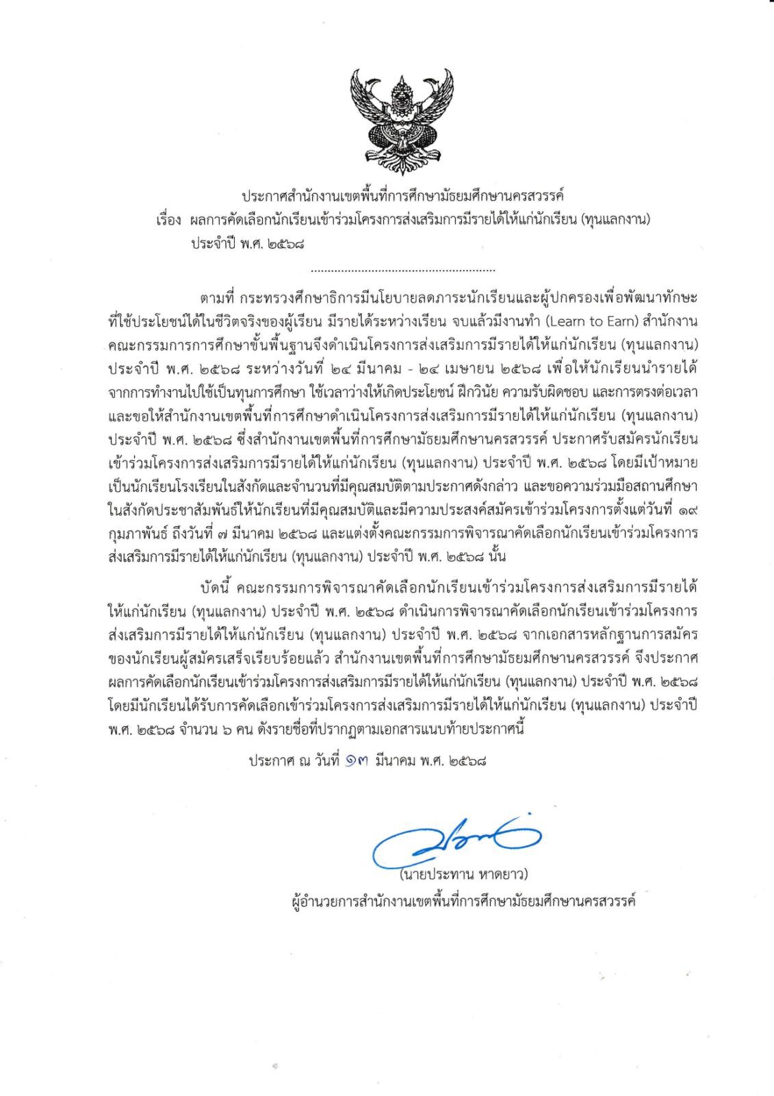 ประกาศผลการคัดเลือกนักเรียนเข้าร่วมโครงการส่งเสริมการมีรายได้ให้แก่นักเรียน (ทุนแลก) ประจำปี พ.ศ. 2568 14 มีนาคม 2025suraset sornchaiข่าวประชาสัมพันธ์