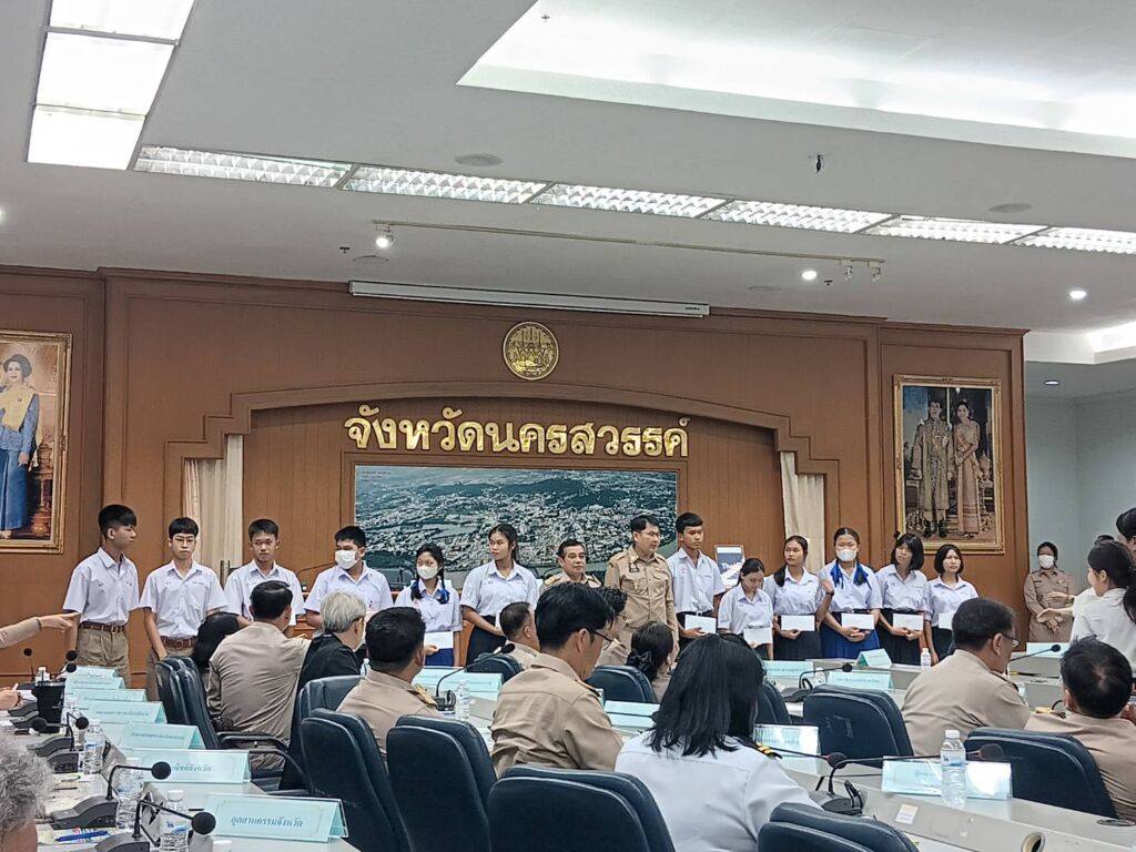 มอบโล่รางวัลประกาศเกียรติคุณคลังปัญญาผู้สูงอายุดีเด่นจังหวัดนครสวรรค์ / มอบทุนการศึกษาให้กับนักเรียนที่สมัครรับทุนการศึกษาพระราชทาน ม.ท.ศ. รุ่นที่ 16 จำนวน 12 ราย / และมอบโล่รางวัลพร้อมหนังสือขอบคุณให้กับคณะทำงานในการจัดการแข่งขันจักรยานทางไกลนานาชาติ “The Princess Maha Chakri Sirindhorn’s Cup Tour of Thailand 2024” จำนวน 19 หน่วยงาน และมอบจักรยานให้สำนักงานเหล่ากาชาดจังหวัดนครสวรรค์ พร้อมทั้งติดตามความก้าวหน้า App นครสวรรค์สุขใจ การประเมินสุขภาพจิตของประชาชนจังหวัดนครสวรรค์ การดำเนินการขจัดความยากจนและพัฒนาคนทุกช่วงวัยอย่างยั่งยืน การคัดแยกขยะอย่างถูกวิธี รวมไปถึงเทศกาลต่างๆที่จะมาถึงในจังหวัดนครสวรรค์ พร้อมทั้งรับฟังเรื่องพิจารณาต่างๆ ของส่วนราชการ ณ ห้องประชุม 501 ศาลากลางจังหวัดนครสวรรค์