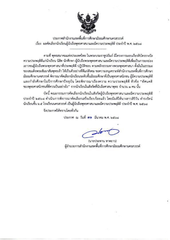 ผลการคัดเลือกนักเรียนผู้นับถือพุทธศาสนาและมีความประพฤติดี ประจำปี 2568 31 มีนาคม 202531 มีนาคม 2025อชิระวุทธิ์ โชคบุณยสิทธิ์ข่าวประชาสัมพันธ์ ประกาศผลคัดเลือกนักเรียนผู้นับถือพุทธศา