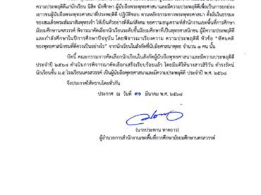 ประกาศผลคัดเลือกนักเรียนผู้นับถือพุทธศา